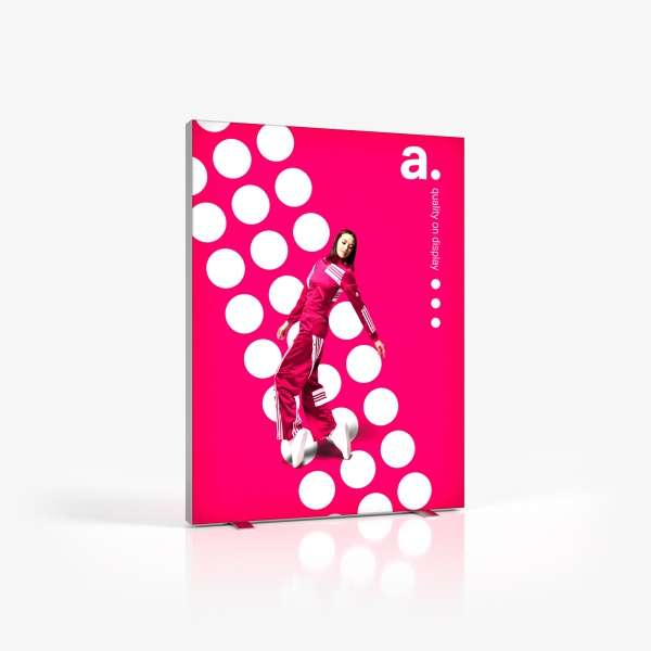 Il adFrame LMD è un pannello pubblicitario LED bifacciale, ideale per progettare stand fieristici o allestimenti di negozi. Oltre alle dimensioni standard, offre opzioni di personalizzazione per altezza e larghezza per soddisfare le esigenze individuali dei clienti.