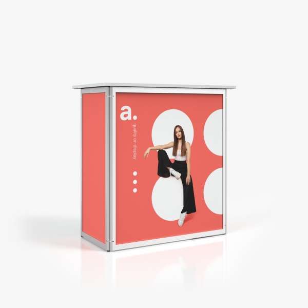 Il sistema di scambio delle stampe consente di adattare facilmente l'aspetto del bancone a diversi eventi e campagne pubblicitarie. Ciò rende uno strumento utilizzabile più volte. È una soluzione pratica ed economica che ti servirà a lungo.