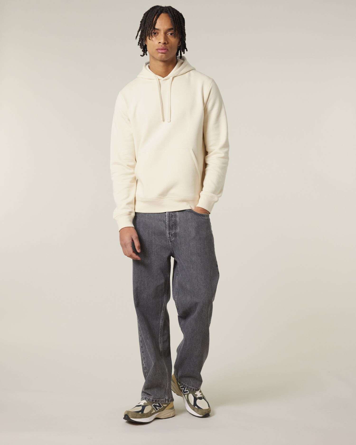 Manica a giroCappuccio dello stesso tessuto della felpa Cordini piatti tono su tonoOcchielli con asola cucitaBordo interno sul collo dietro a lisca di pesceMezzaluna dello stesso tessuto della felpa sul collo dietroCostina 1x1 su orlo manica e orlo inferiore Impuntura a cucitura piatta su tutte le cucitureTasca a marsupio con impuntura a cucitura piatta