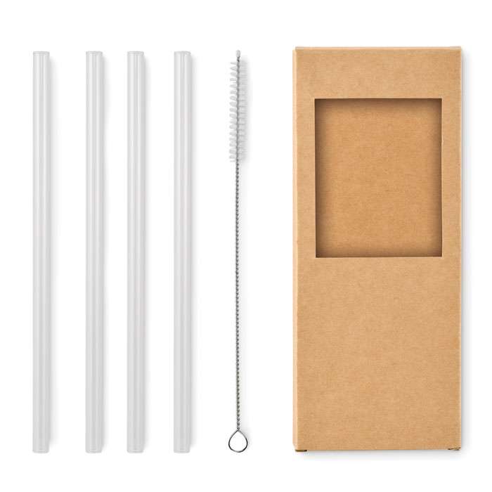 Confezione da 4 cannucce riutilizzabili in vetro borosilicato con 1 spazzola per la pulizia.