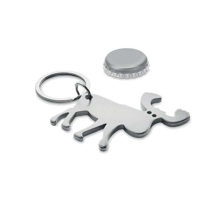 Portachiavi in alluminio riciclato con apribottiglie a forma di renna.