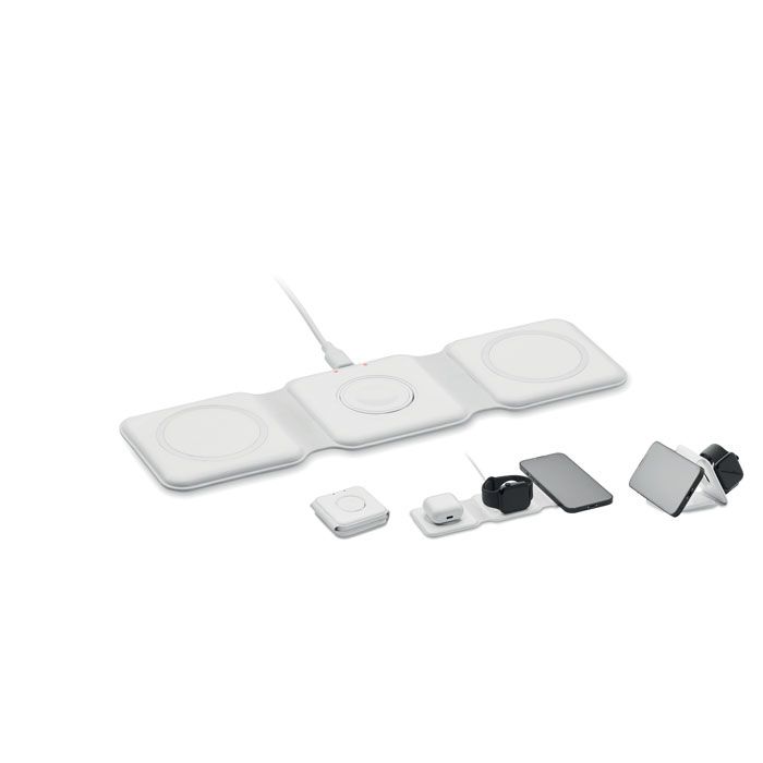 Caricatore wireless e organizer in bambù con supporto per telefono, 3 portapenne, tappetino per mouse pieghevole in RPET. Uscita: DC 9V/1,67A (15W). Compatibile con tutti i dispositivi abilitati QI come gli ultimi Android, iPhone® 8, X e più recenti.