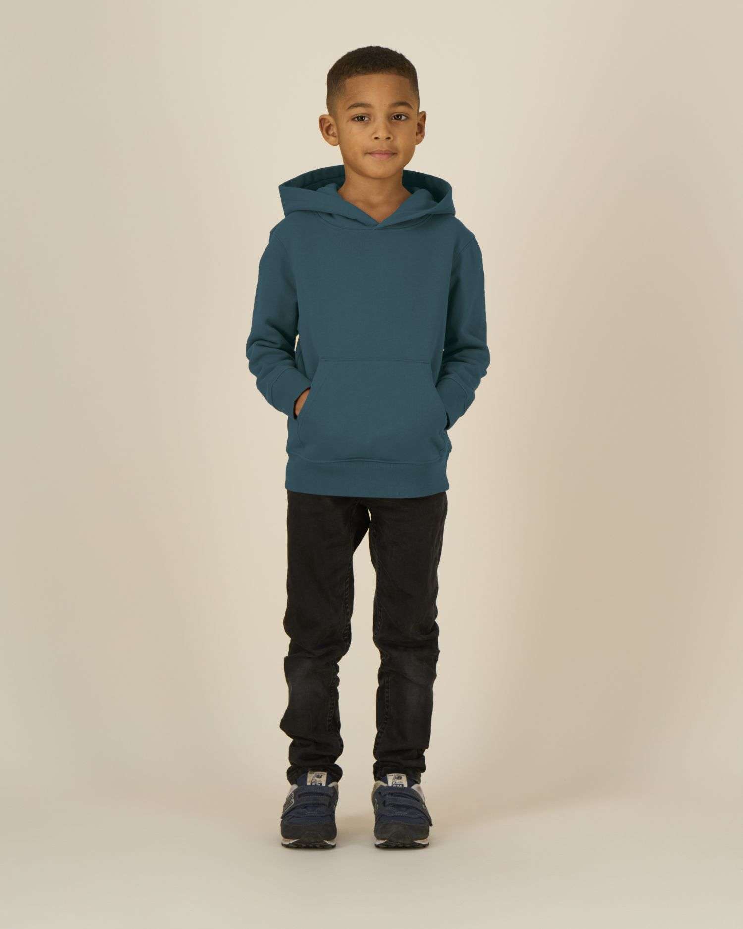 Maniche cuciteCappuccio doppio foderato in tessuto principaleNastro collo interno in single jerseyMezza luna in tessuto principale sulla parte posteriore del collo con doppia ago da 3 mmCucitura a punto singolo sulla cucitura della scollaturaCostina 1x1 sull'orlo delle maniche e inferioreCucitura a punto doppio centrata sulla cucitura sull'orlo, sul polsino e sul giromanicaTasca a marsupio con cucitura a punto singolo da 3 mm