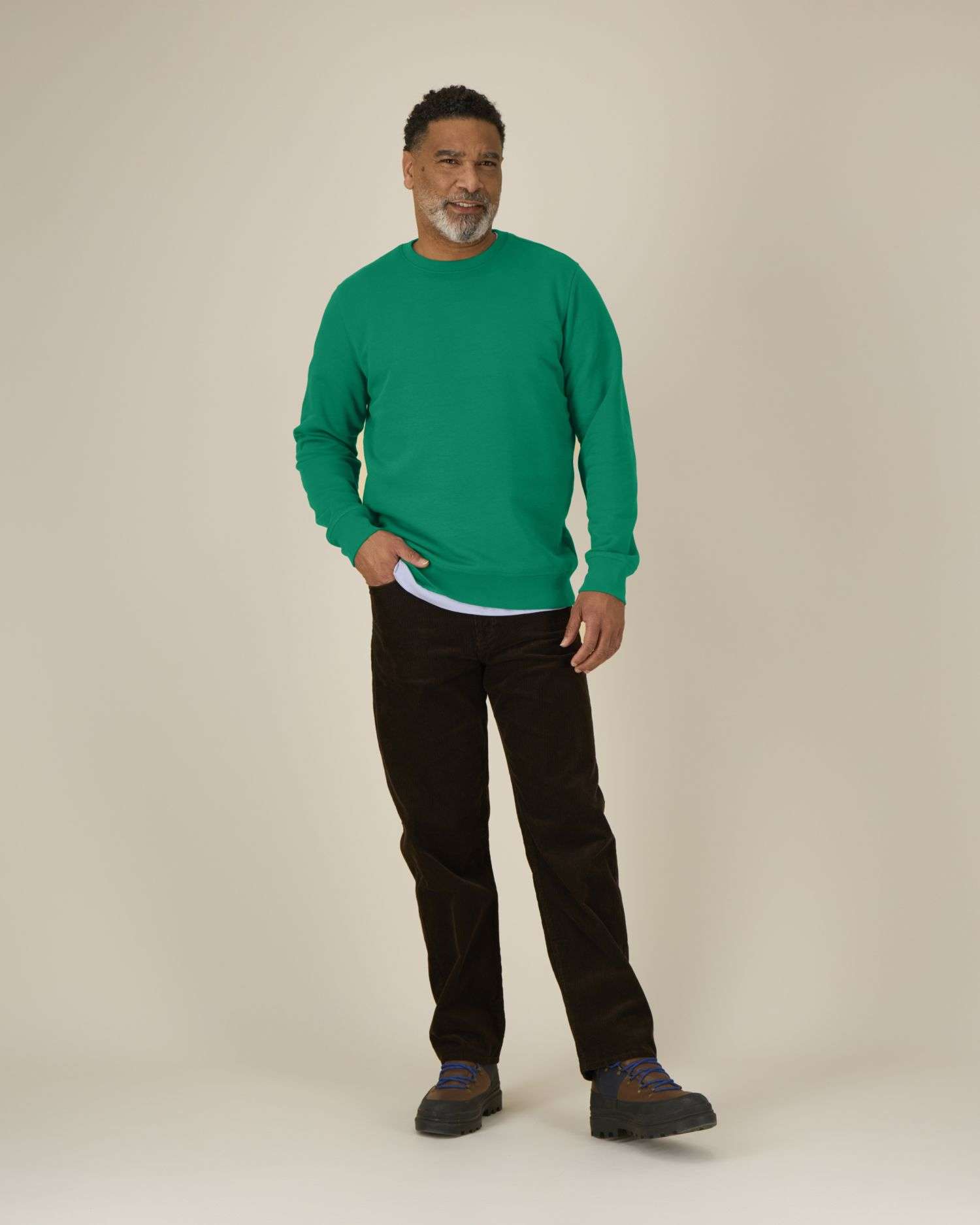 Manica a giroColletto, polsini e bordo inferiore a costine 1x1Nastrino di rinforzo con motivo spigato sull’interno colloImpuntura piatta su tutte le cucitureMezzaluna sull’interno del collo nel tessuto principale
