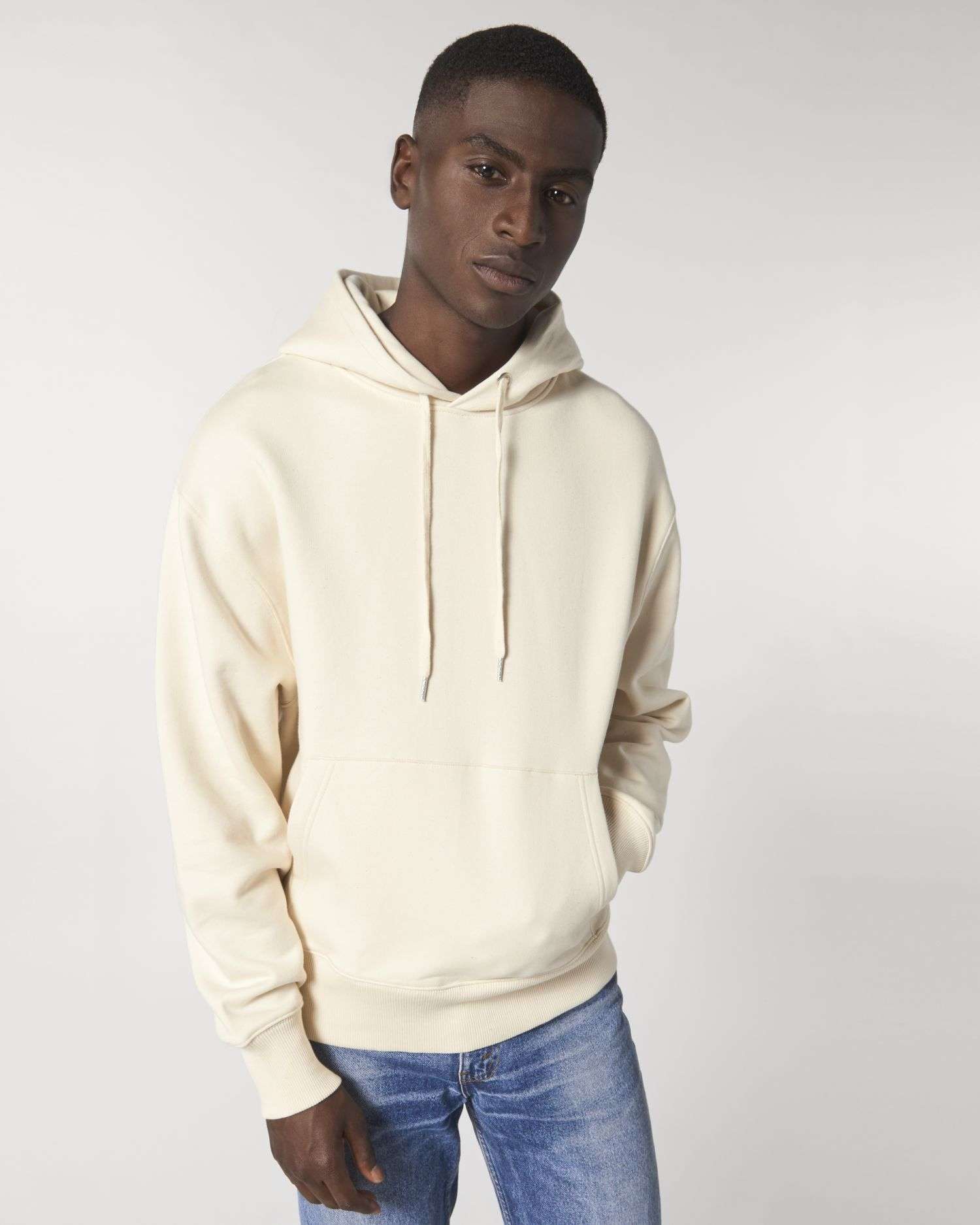 Manica a giroCappuccio foderato nel tessuto principaleCordoncini piatti tono su tono con estremità in metalloOcchielli in metalloFettuccia spigata sull'interno colloMezzaluna sull'interno collo nel tessuto principaleImpuntura semplice sullo scolloPolsino e girovita a costine 2x2Doppia impuntura su giromanica, polsino e girocolloTasca a marsupio