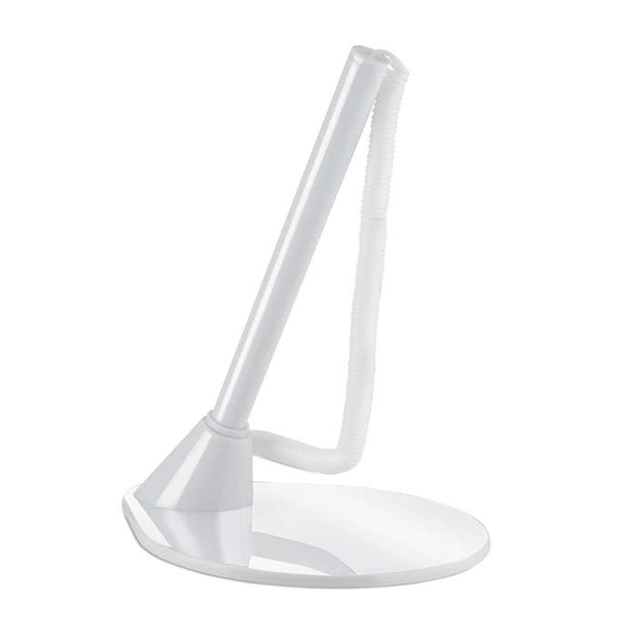 Penna a sfera e base in plastica con corda elastica. Refill blu.