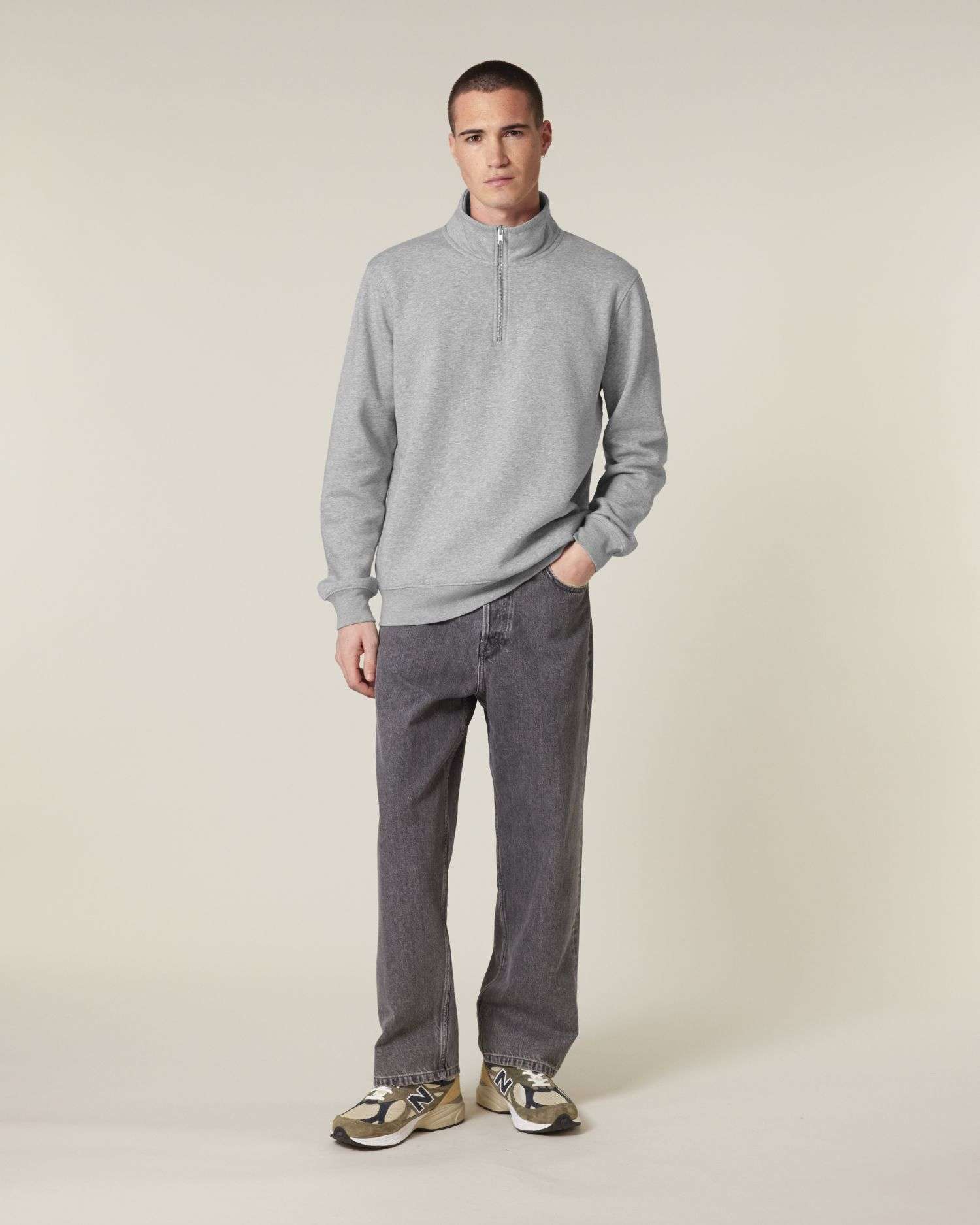 Maniche montateColletto mock in tessutoCerniera a un quarto sul davantiCostina 1x1 su polsini delle maniche e orlo inferioreCuciture a doppio ago su giromanica, polsini delle maniche e orlo inferioreNastro in spina di pesce interno al collo e all'interno della cernieraMezzaluna interna in tessuto
