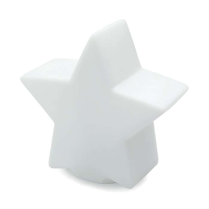 Luce in PVC a forma di stella. La luce cambia cambia colori alternando: bianco, blue, viola, rosso, giallo e verde. 3 LR44 batterie incluse.