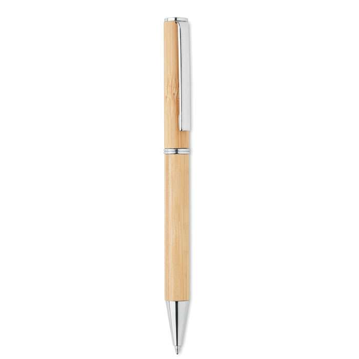 Penna a sfera in bamboo con attacco in metallo. Inchiostro blu.