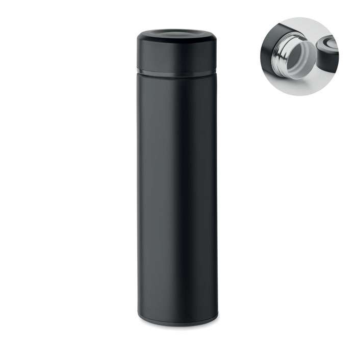 Bottiglia isolante sottovuoto a doppio strato in acciaio inossidabile riciclato (90% acciaio inossidabile riciclato e 10% acciaio inossidabile) con con interno in ceramica. Senza perdite. Capacità: 420ml.