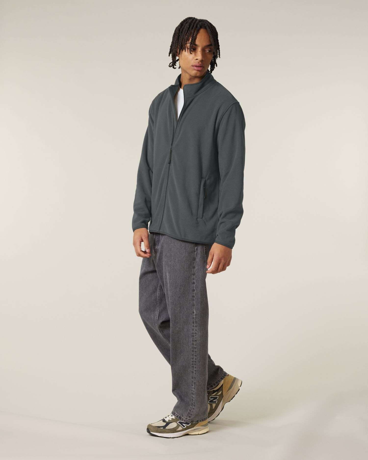 Maniche montateFinitura elastica su bordo del collo, polsini e orloAnello gros grain interno al colloCerniera in nylon con cursore in metallo e terminale del cordinoTessuto spazzolato con finitura anti-pilling interno ed esternoTasche laterali profilate con apertura a zipNastro interno al collo in poliestere riciclato