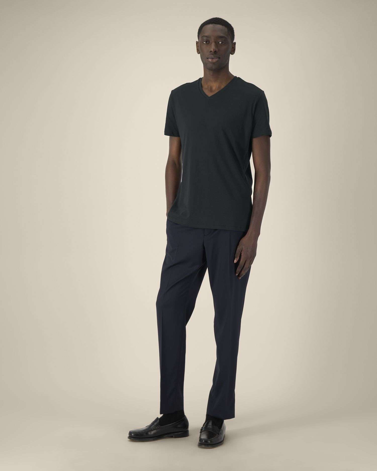 Maniche a giroGirocollo nel tessuto principaleFettuccia di rinforzo sull'interno collo nel tessuto principaleDoppia impuntura stretta a fondo manica e sul bordo inferiore