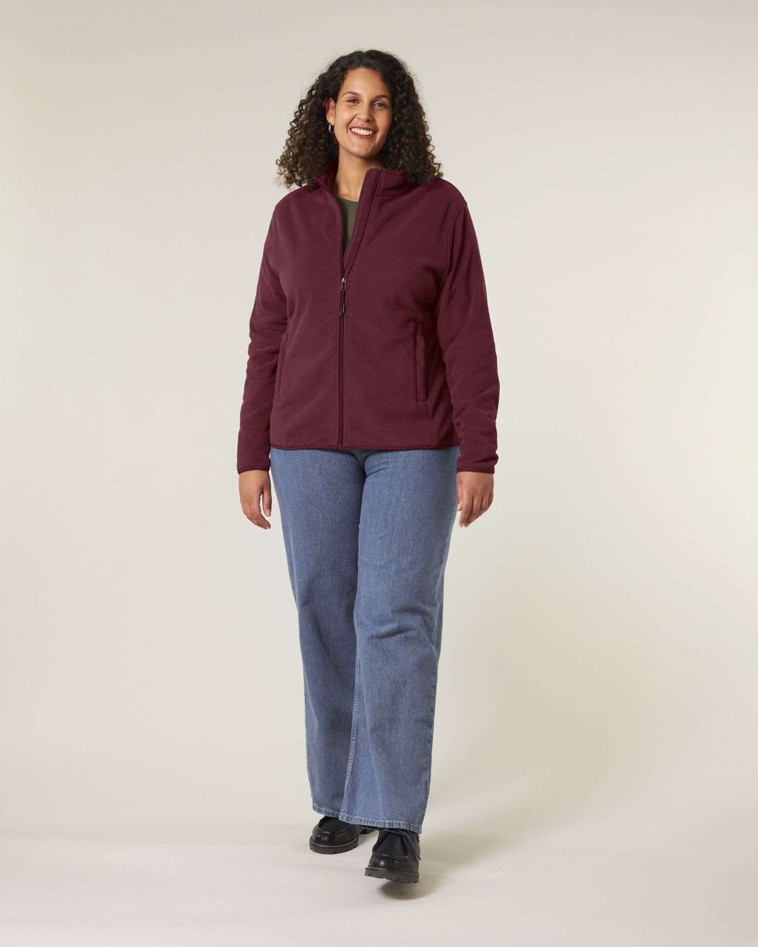 Maniche montateFinitura elastica su bordo del collo, polsini e orloAnello gros grain interno al colloCerniera in nylon con cursore in metallo e terminale del cordinoTessuto spazzolato con finitura anti-pilling interno ed esternoTasche laterali profilate con apertura a zipNastro interno al collo in poliestere riciclato