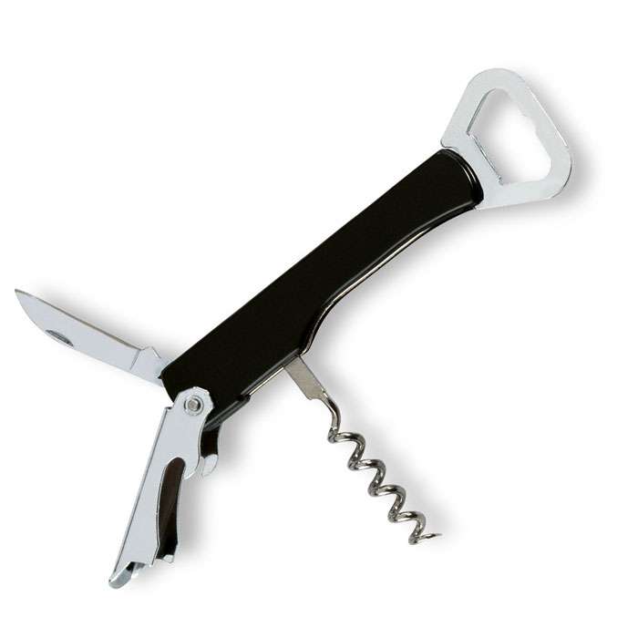 Cavatappi con lama ed apribottiglie in acciaio al cabonio e struttura in PS.
